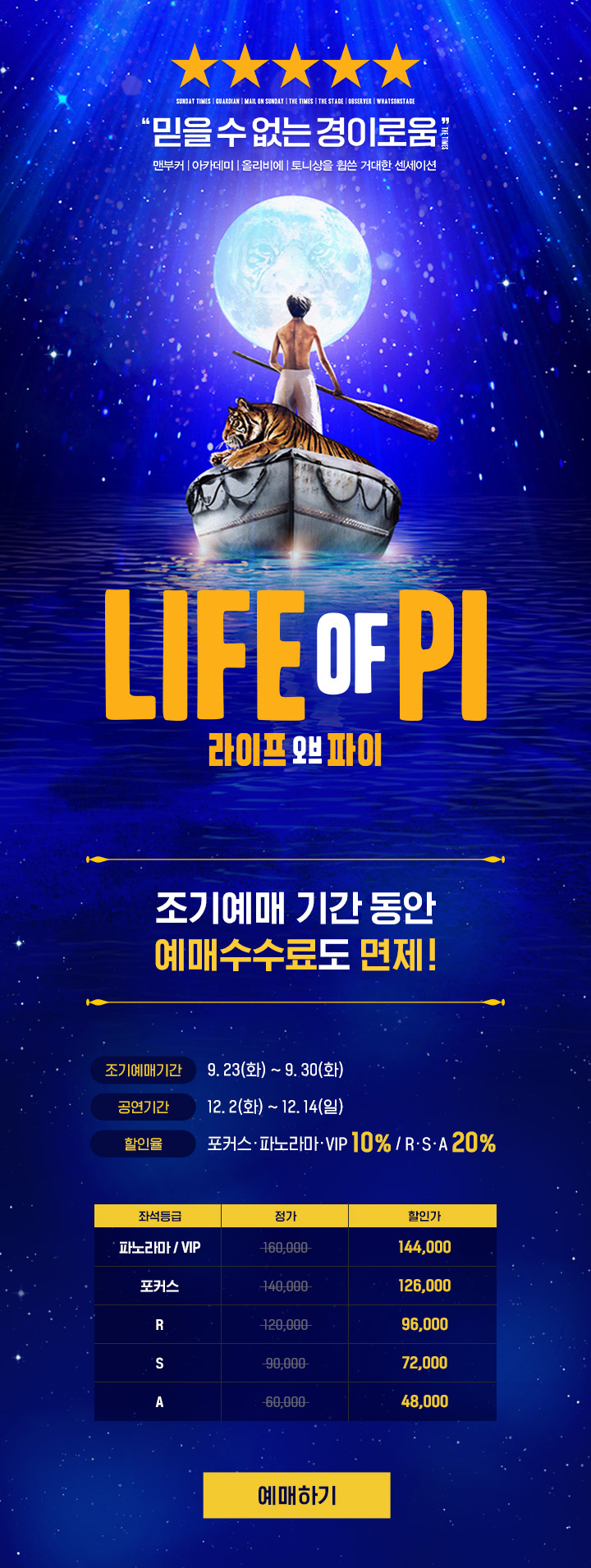 <라이프 오브 파이> 한국 초연 첫 티켓오픈! 조기예매+예매수수료 면제